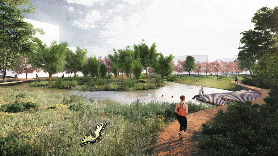 We believe in a future of intelligent, inclusive, biodiverse cities. Concentration of urbanisation and combination of functions provide a varied range of work and amenities close to home. That is good for our health and saves us a lot of travelling time, energy and landscape. As designers we contribute to that by working together with partners to create attractive environments where people can live, work and meet one another and where children can play. By making the public space greener, letting trees grow and flowers bloom, we contribute to cooling, an attractive environment and in an intelligent way we provide space for rainwater catchment and infiltration.