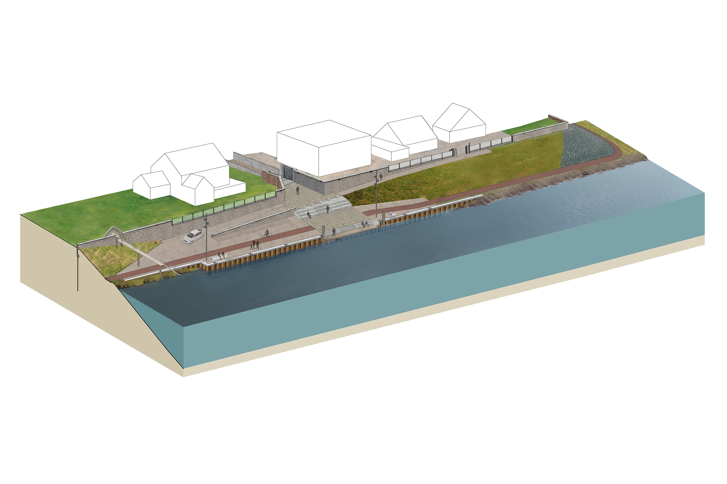 Strootman Landschapsarchitecten was betrokken bij de DO-fase en TO-fase. Een belangrijke taak was om de onderlinge samenhang tussen de verschillende onderdelen van het ontwerp te versterken, met ruimtelijke voorstellen en advies voor materiaal- en kleurgebruik. Daarnaast stond Strootman voor de opgave om het narratief – het verhaal van deze bijzondere locatie – goed over het voetlicht te brengen. Dat deden we door verbijzonderingen aan te brengen zoals materiaalcombinaties, bankjes, markeringen en informatiedragers - alle verwijzend naar de cultuurhistorie.