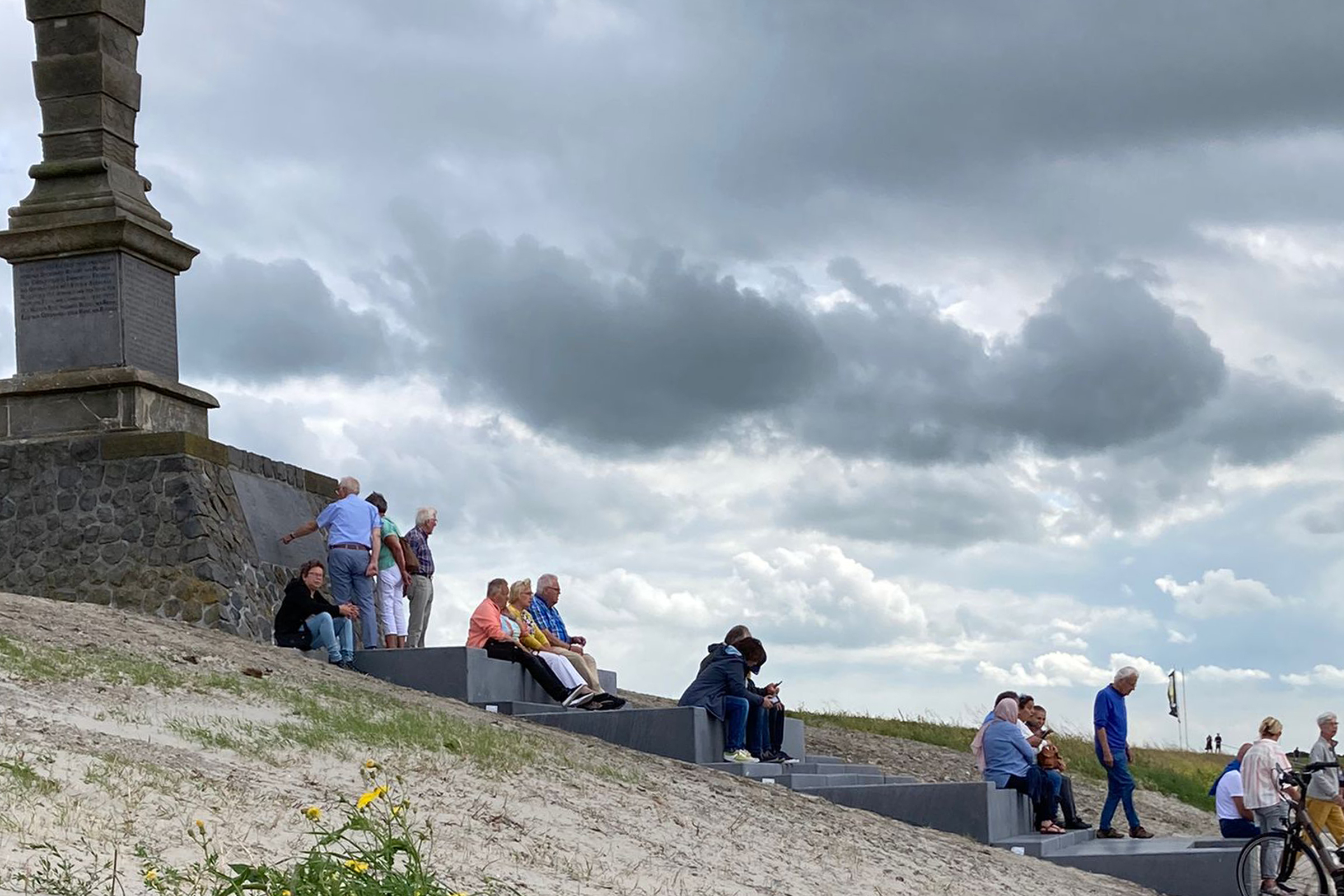 Ook opgenomen in de trap, zijn de krún/kruinhoogtes van de dijk. Die laten zien hoe in 500 jaar de dijk telkens is opgehoogd. De trappen verbinden het strand nog beter met de stad en met het Balklandpark - ook door ons ontworpen en vorig jaar in gebruik genomen.