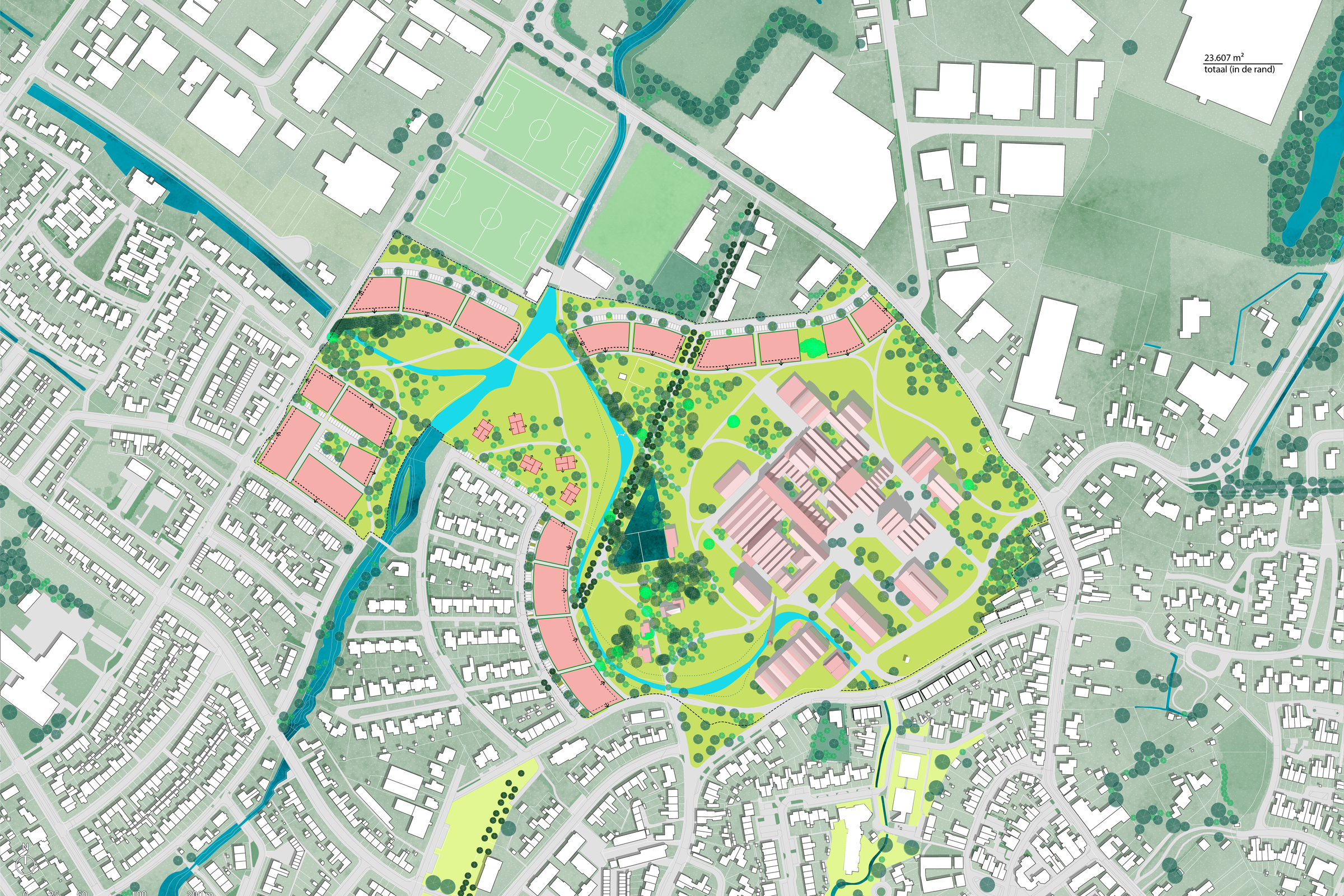 Het Masterplan - nu in concept voor 50% klaar - benut de vele mogelijkheden van het terrein: niet alleen als bijzondere woon-, werk- en recreatielocatie, maar ook als het gaat om herstel van een belangrijke identiteitsdrager van het gebied, de Stads Regge.